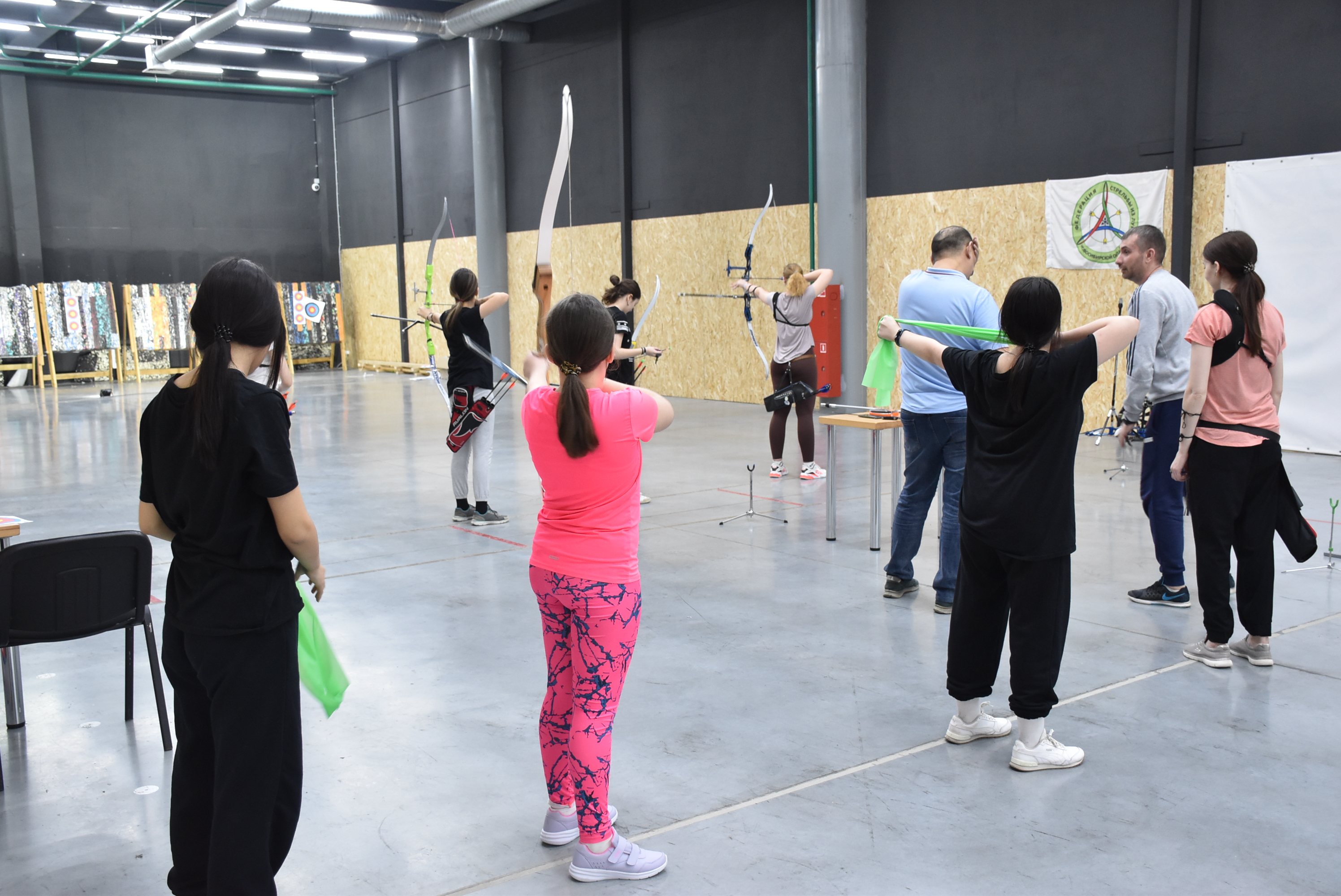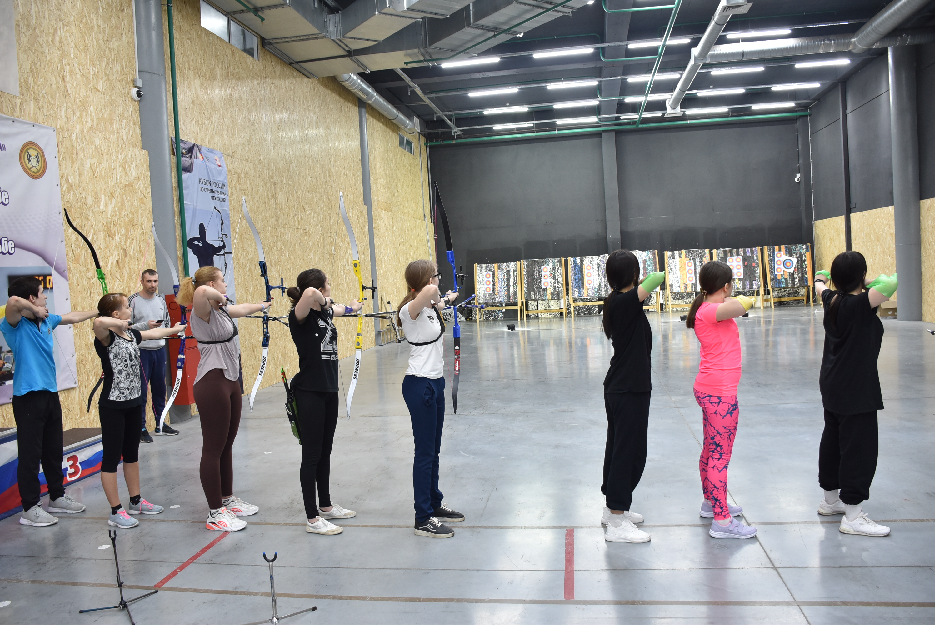 Ребята начинают стрелять с тренировочной дистанции 3 метра, потом переходят на дистанцию 18 метров, на которой проводятся «зимние» соревнования в закрытых помещениях. По мере роста мастерства переходим на 30-90 метров, а затем на олимпийский формат 70 метров. Стрельба на улице требует хорошего понимания траектории движения стрелы, влияния погодных условий. Бывает и ветер, и дождь, а в любом случае необходимо стрелять в «десятку».